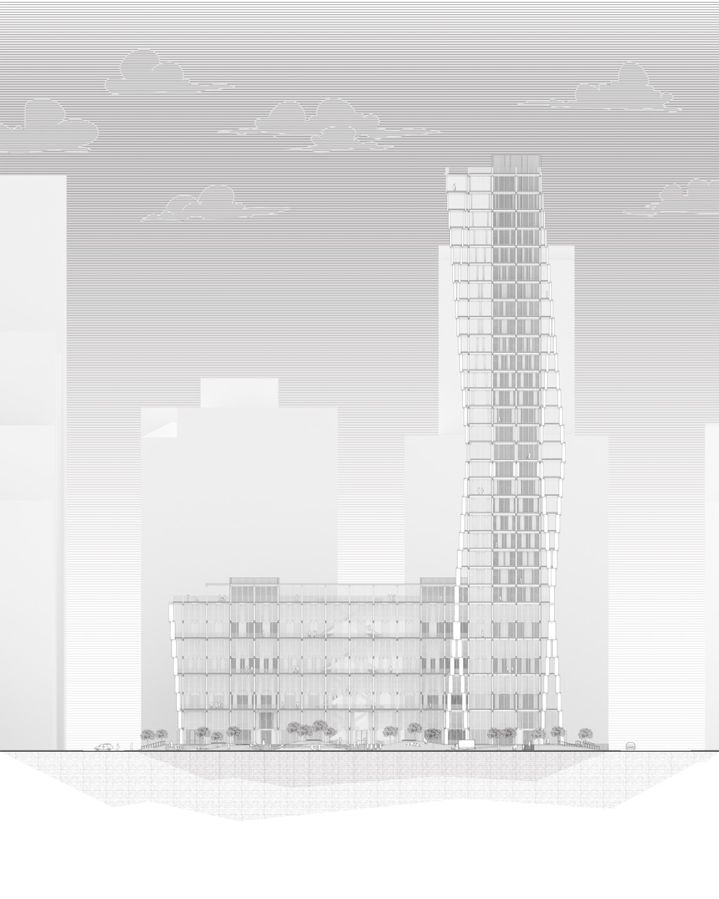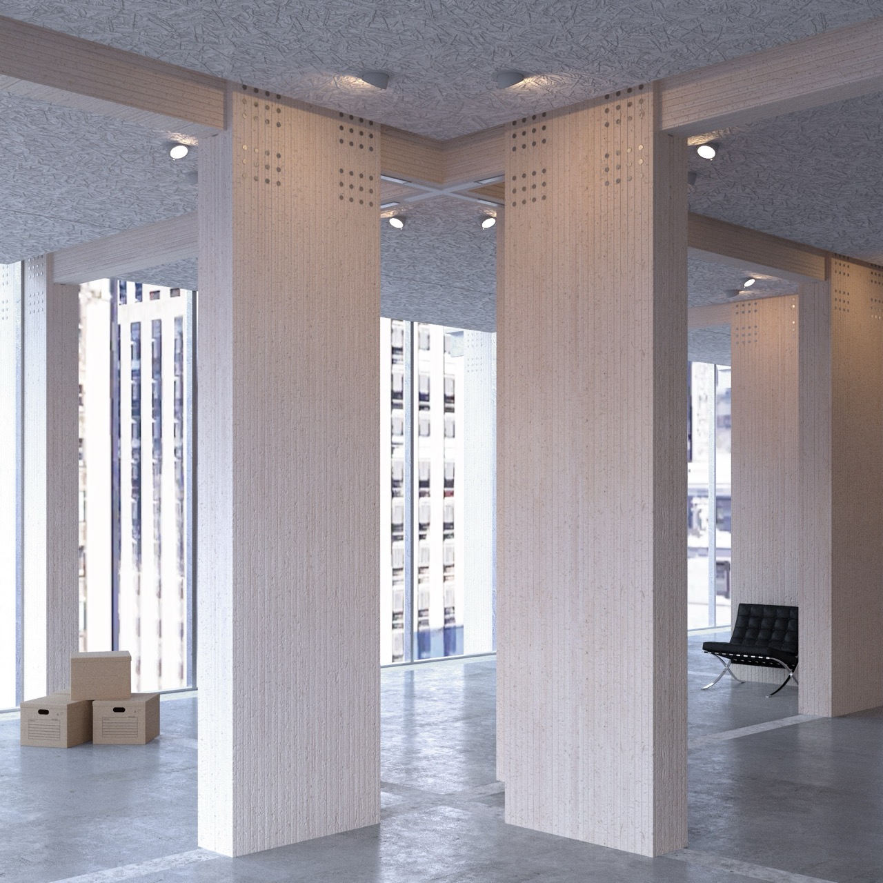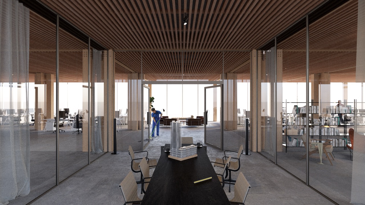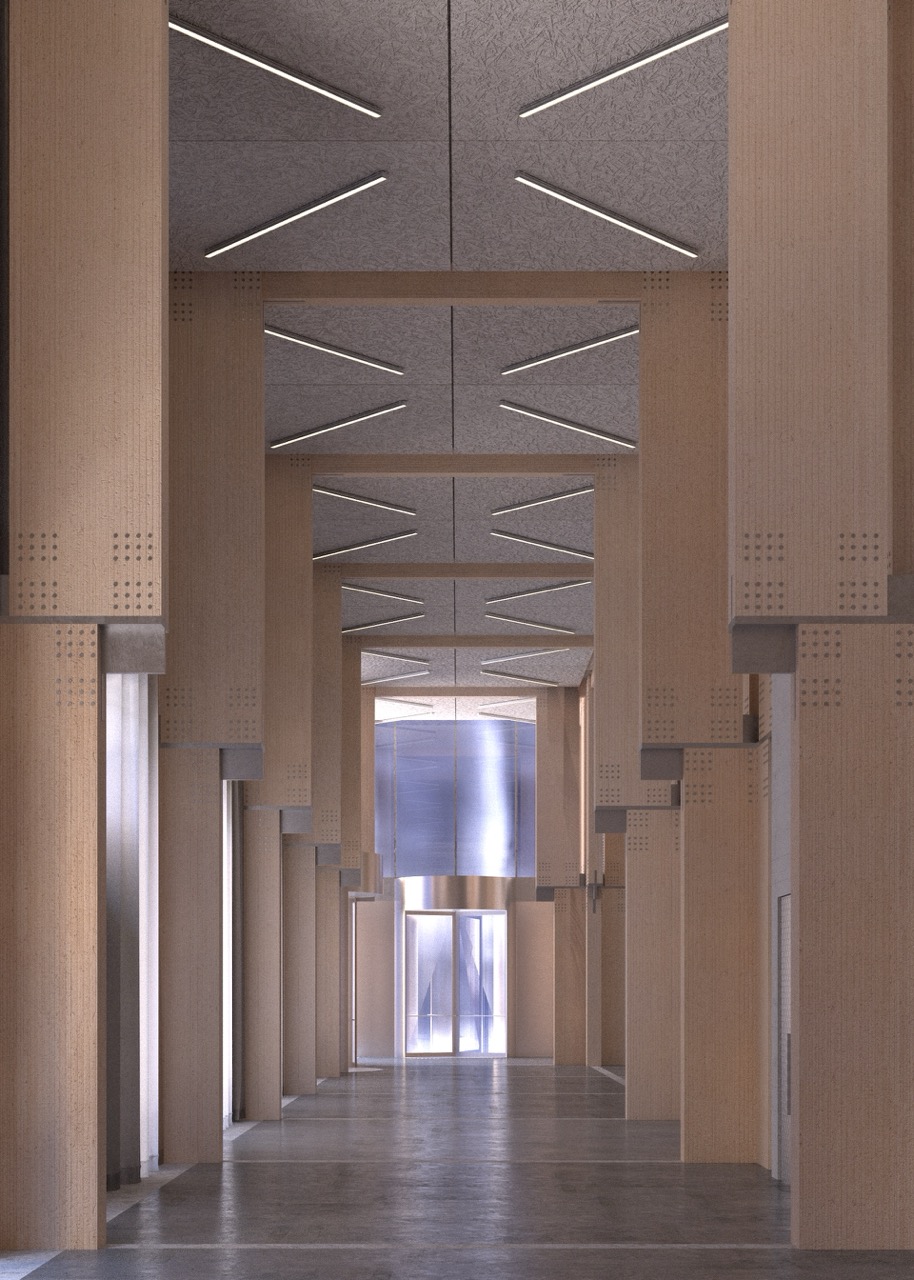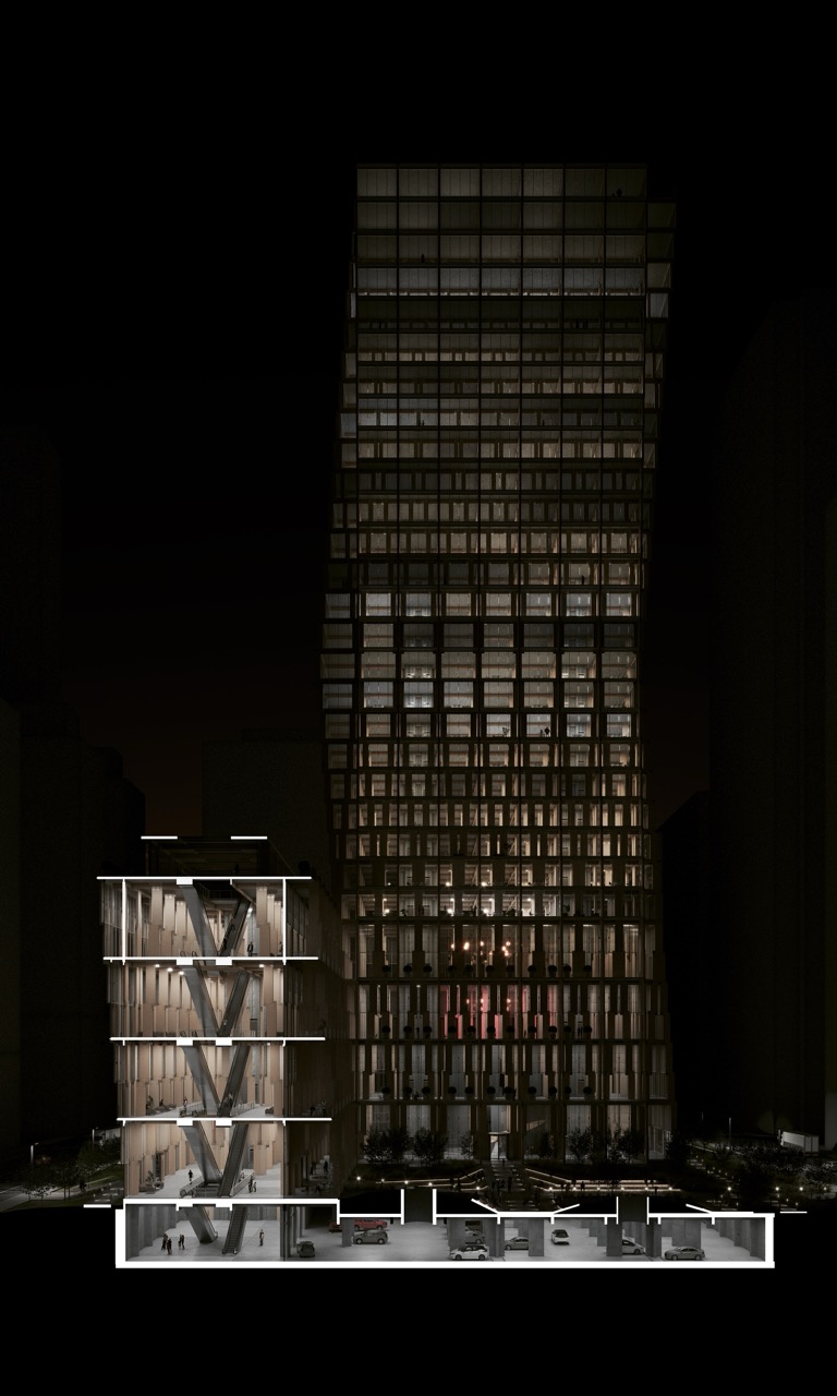 The (CLT)ower project reinterprets Mies van der Rohe’s architectural legacy in a contemporary mass timber high-rise, marrying modernist structural clarity and discipline with sustainable innovation. At its core, the design is governed by a rigorous structural logic rooted in a disciplined grid that orchestrates space and support with modular precision.