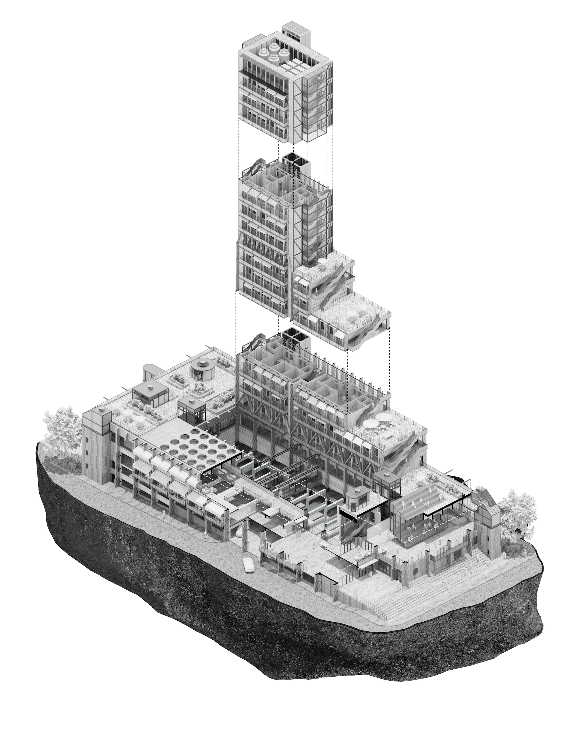 Harvard University’s Peabody Terrace, designed in 1965 by José Luis Sert, remains a significant example of modernist campus housing. Conceived to accommodate graduate students with families, the project formed part of Sert’s broader master plan for the university, which emphasized open space and circulation as strategies for fostering connection between Harvard and the surrounding Cambridge community.